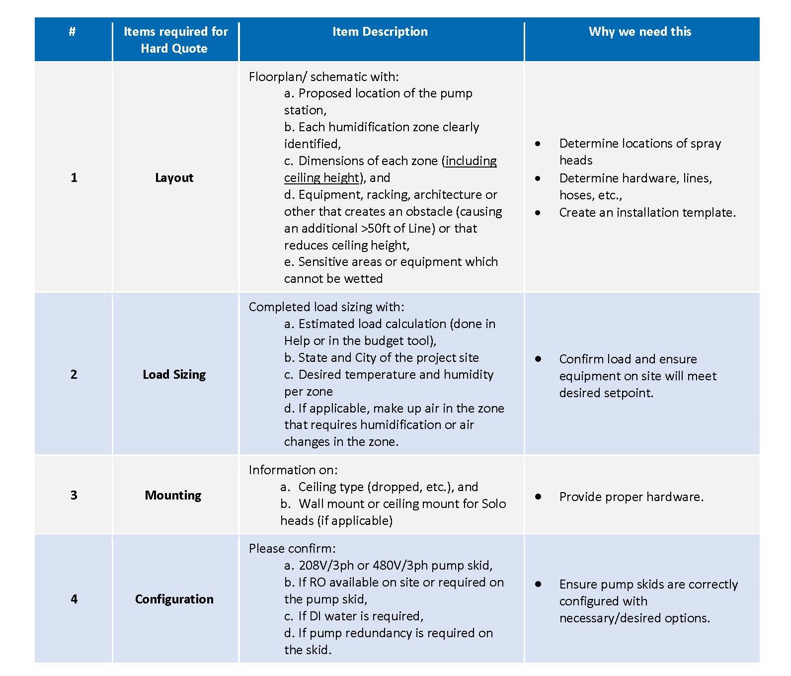 To request a hard quote, please send a completed Step 4 – RFQ – For Hard Quote Only (from the budget tool) as well as the below 4 items to na.applications@condair.com.